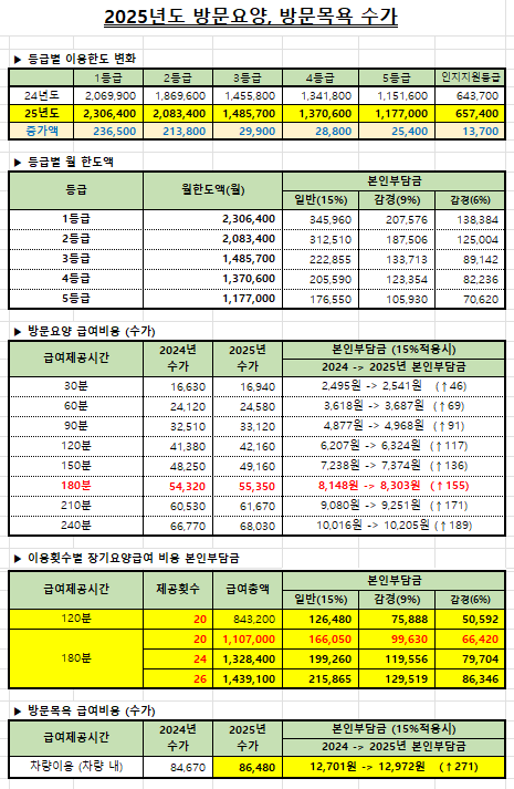 2025년도 장기요양기관 방문요양, 방문목욕 수가 안내 입니다.